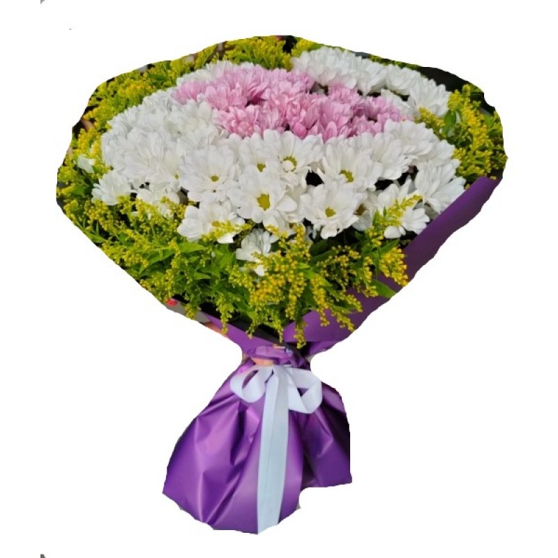 beyaz pembe rekli kırzantem buketi